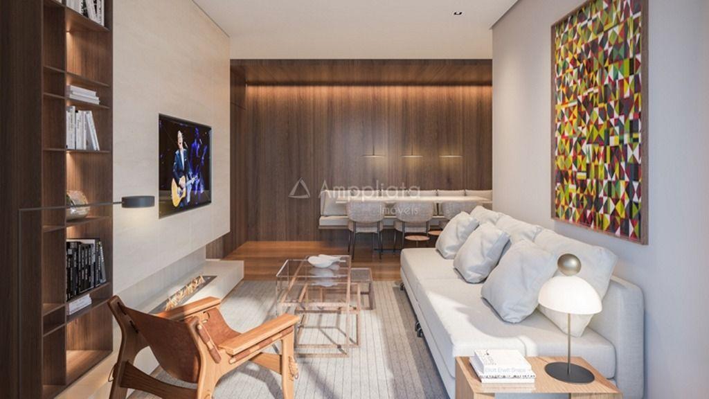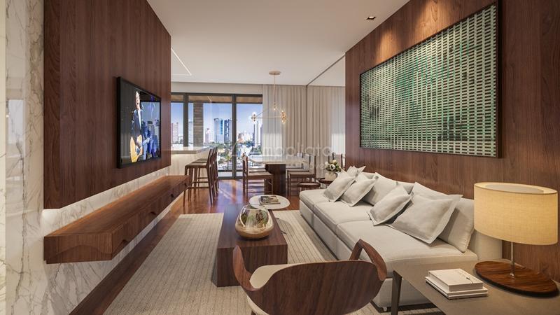 Destaque para os interiores com lavabo, sala de estar e jantar integradas ao terraço com churrasqueira, estar externo e cozinha americana.