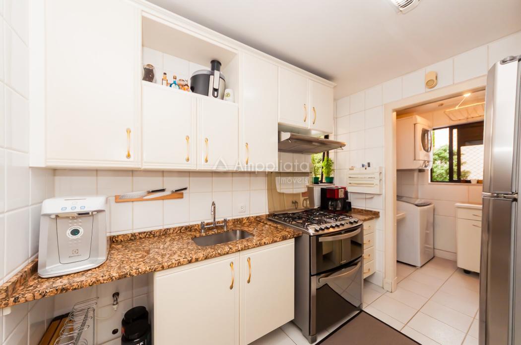 A copa-cozinha é funcional e totalmente mobiliada, assim como a área de serviço, oferecendo praticidade no dia a dia.