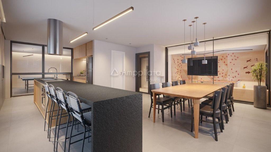 A integração entre sala e cozinha favorece a convivência e valoriza a luminosidade natural, enquanto os acabamentos seguem uma linha contemporânea, com atenção aos detalhes que fazem a diferença.