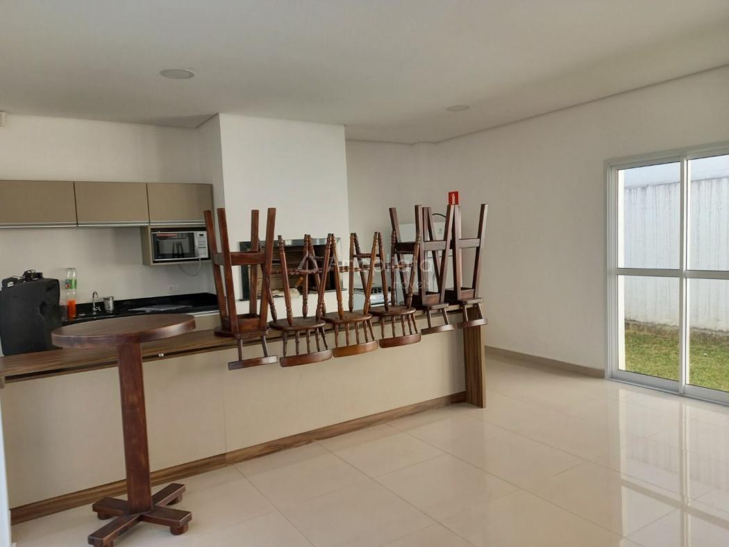 Apartamento nunca habitado. 2 dormitórios (1 suíte), piso em porcelanato em todo o apartamento, esquadrias com venezianas nos dormitórios. Pavimento térreo, somente 12 unidades no edifício. Vaga individual numero 03. Edifício com portaria eletrônica, baixo custo condominial. Área externa com salão de festas e churrasqueira. A uma quadra da UniCuritiba, próximo a comércio e serviços em geral. Fotos ilustrativas de outra unidade decorada que havia em exposição no local, móveis e objetos não fazem parte do negócio. Imóvel nunca habitado, sem benfeitorias. Verificar valores de condomínio e Iptu.