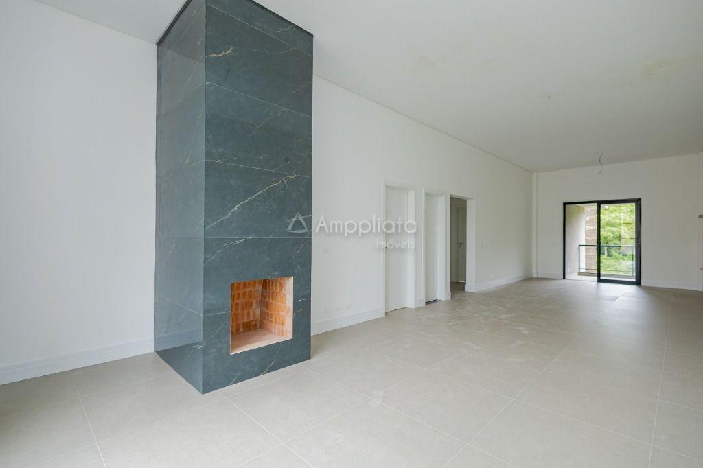 A sala ampla com lareira cria um ambiente acolhedor e aconchegante, além disso, o condomínio conta com uma série de comodidades para o seu lazer e bem-estar, como salão de festas, playground e quadra poliesportiva.