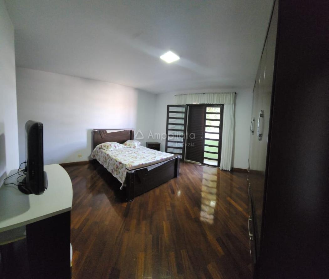 INTEGRANDO O CORPO PRINCIPAL DA CASA, COZINHA GRANDE COM SALA DE JANTAR PARA MESA DE 12 LUGARES, HALL DE ENTRADA, LAVABO, SALA DE ESTAR. SUBINDO AS ESCADAS DOIS DORMÍTÓRIOS E BANHEIRO SOCIAL, SUITE COM SACADA E ESTAR ÍNTIMO/SALA DE TV. COM SACADA.