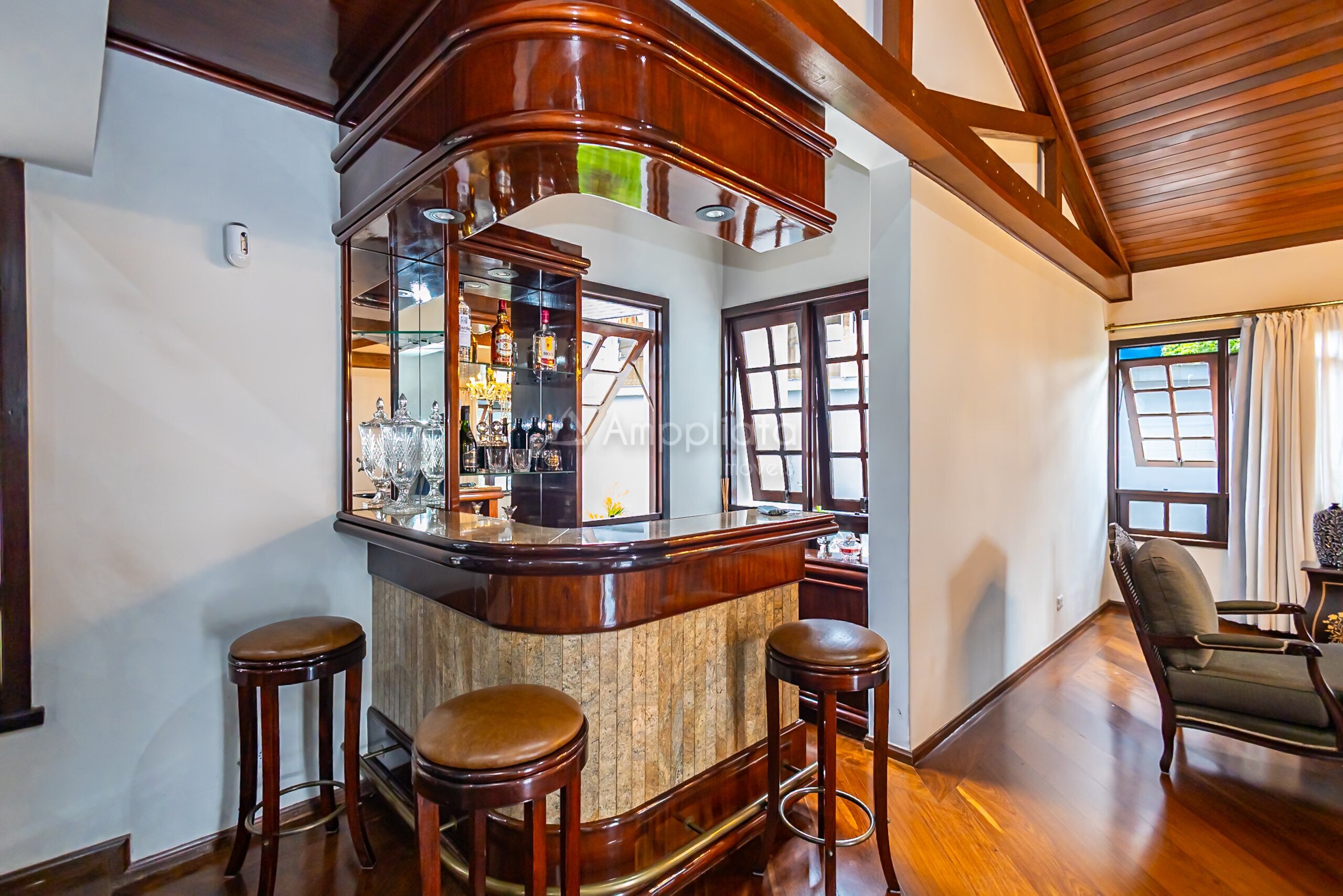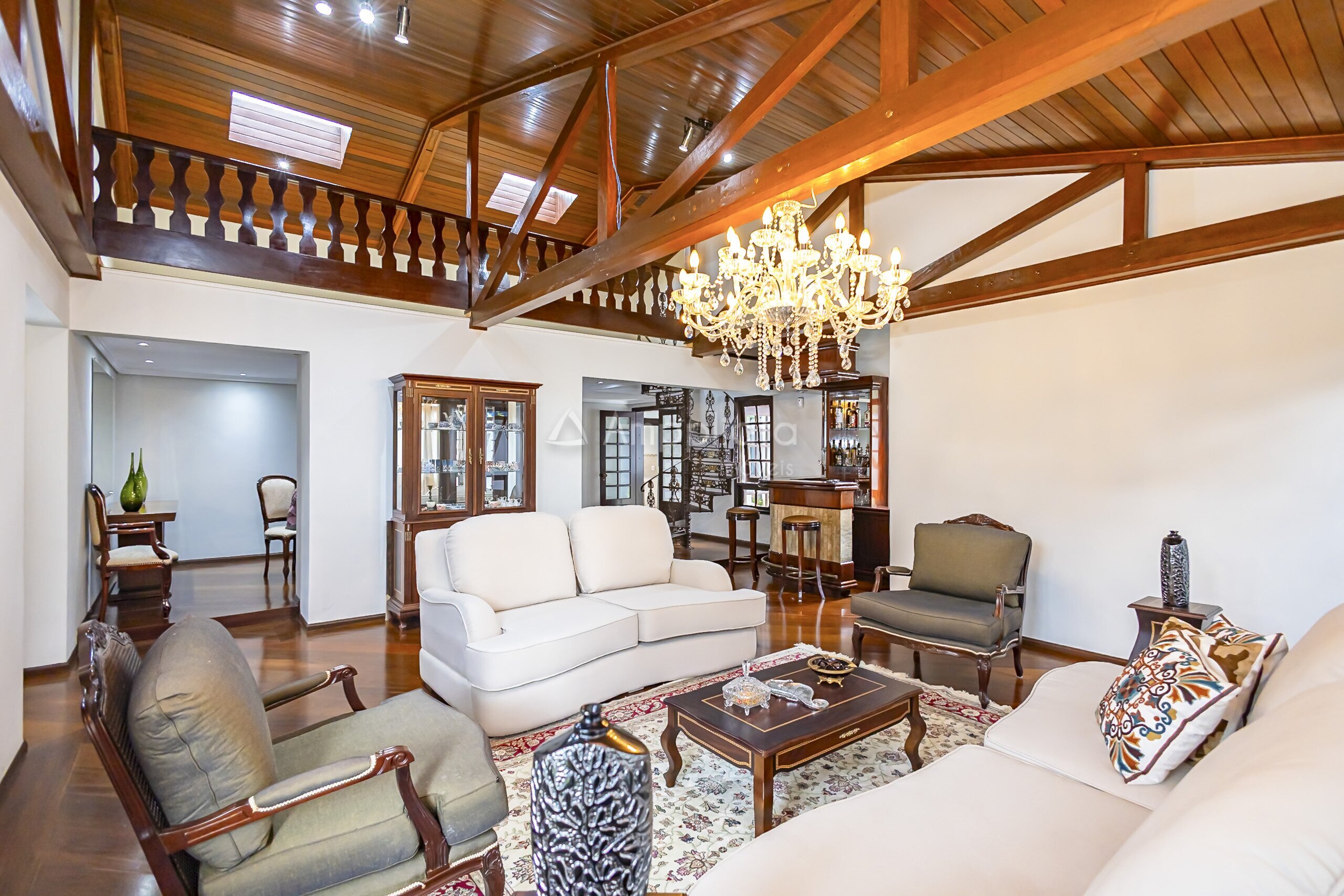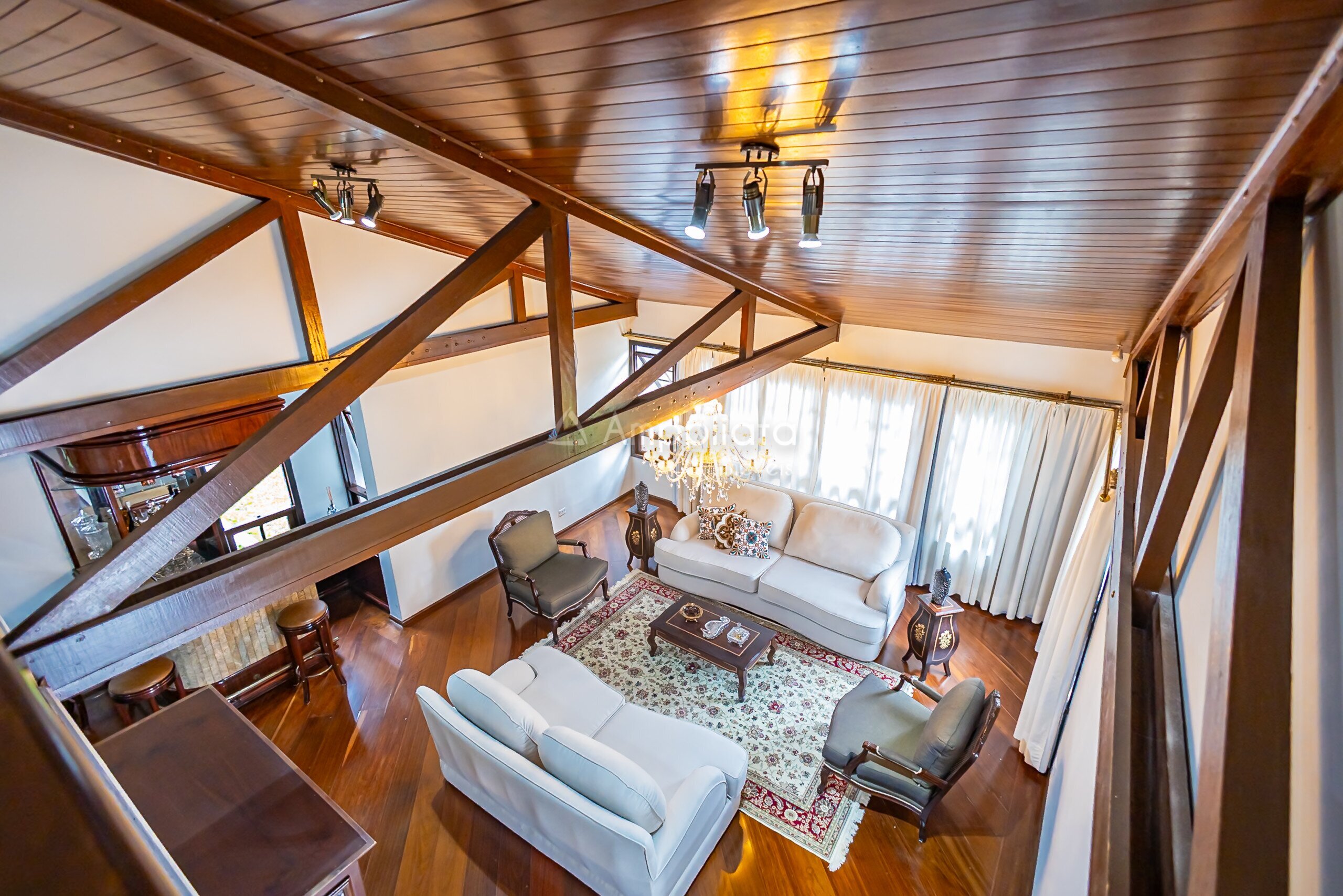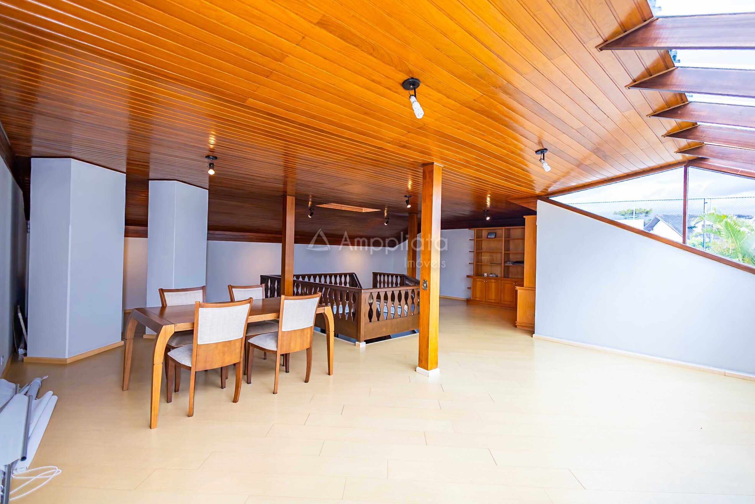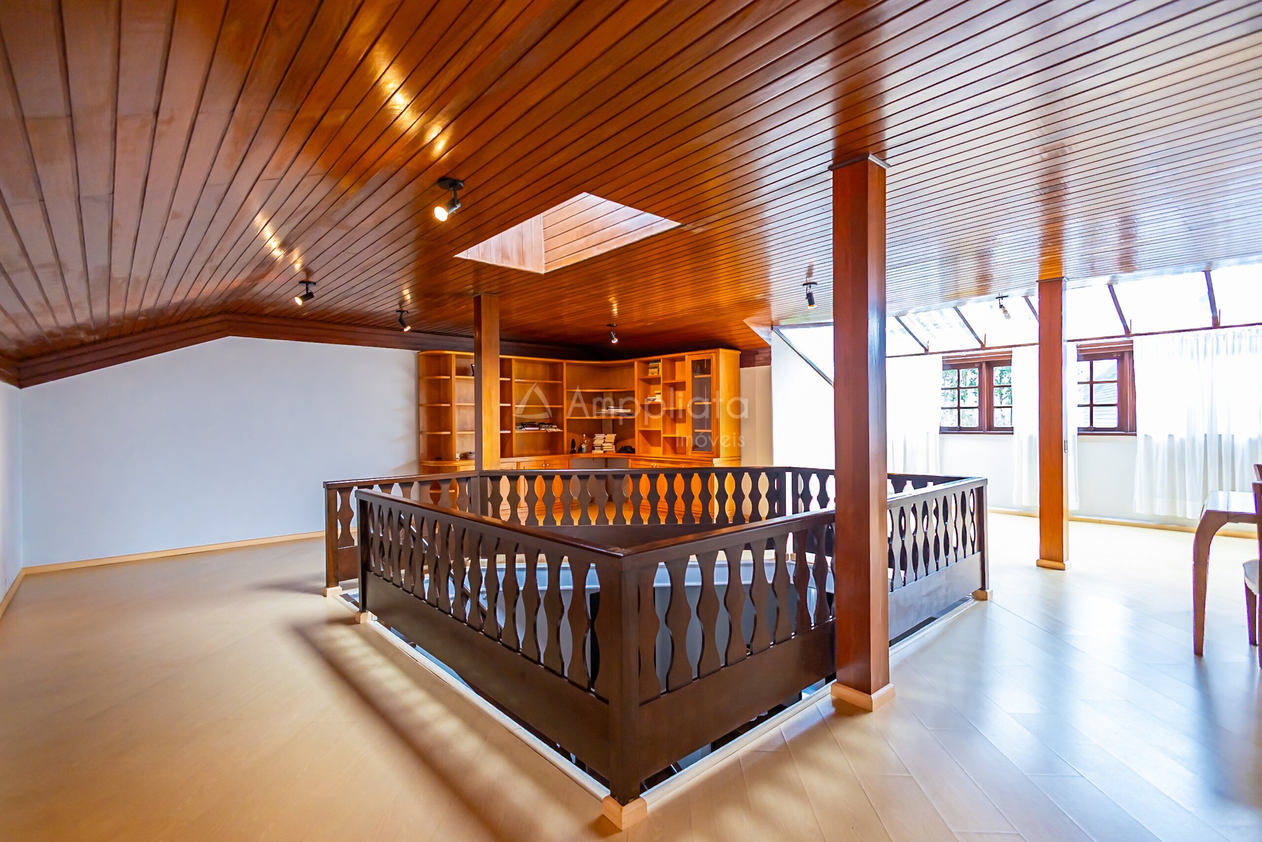 2 mezaninos de uso opcional, sendo um deles com parte da cobertura em vidro, hoje utilizado como biblioteca