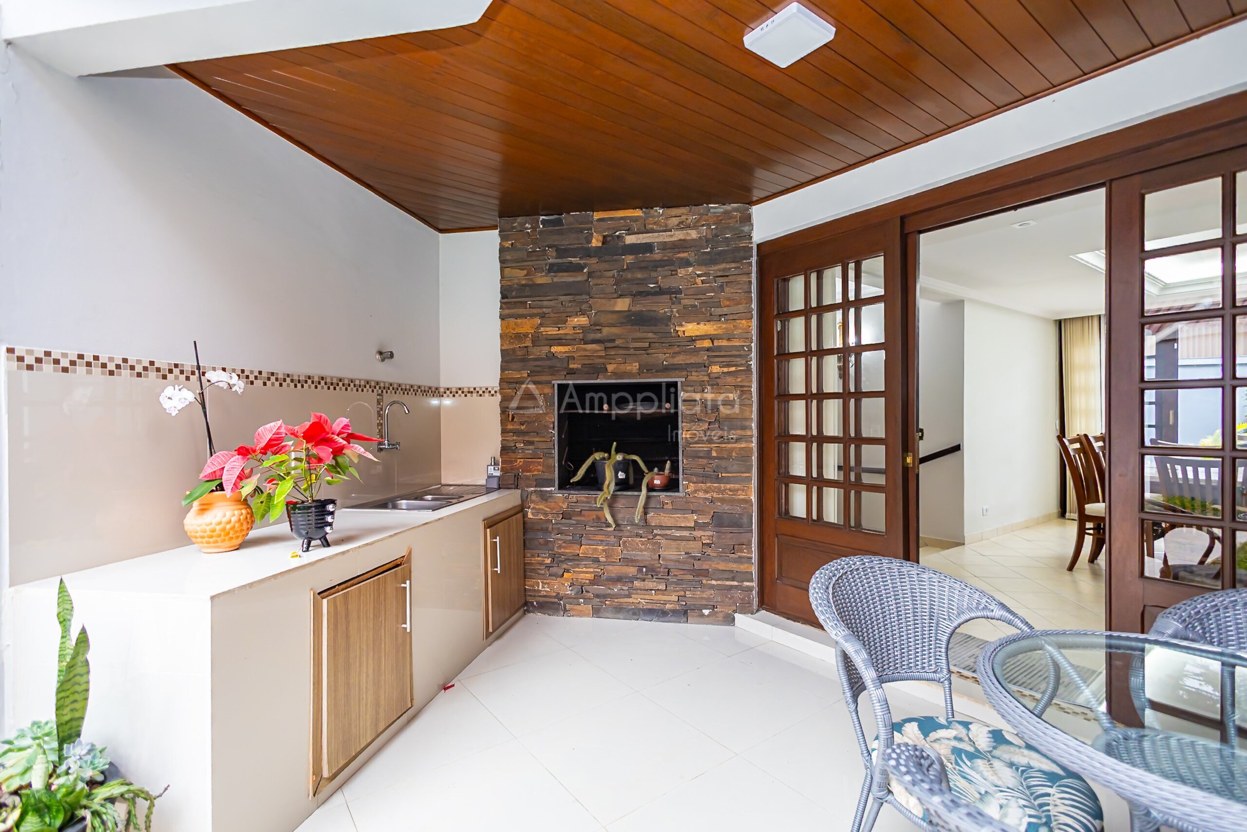 Churrasqueira integrada à sala de jantar, perfeita para receber