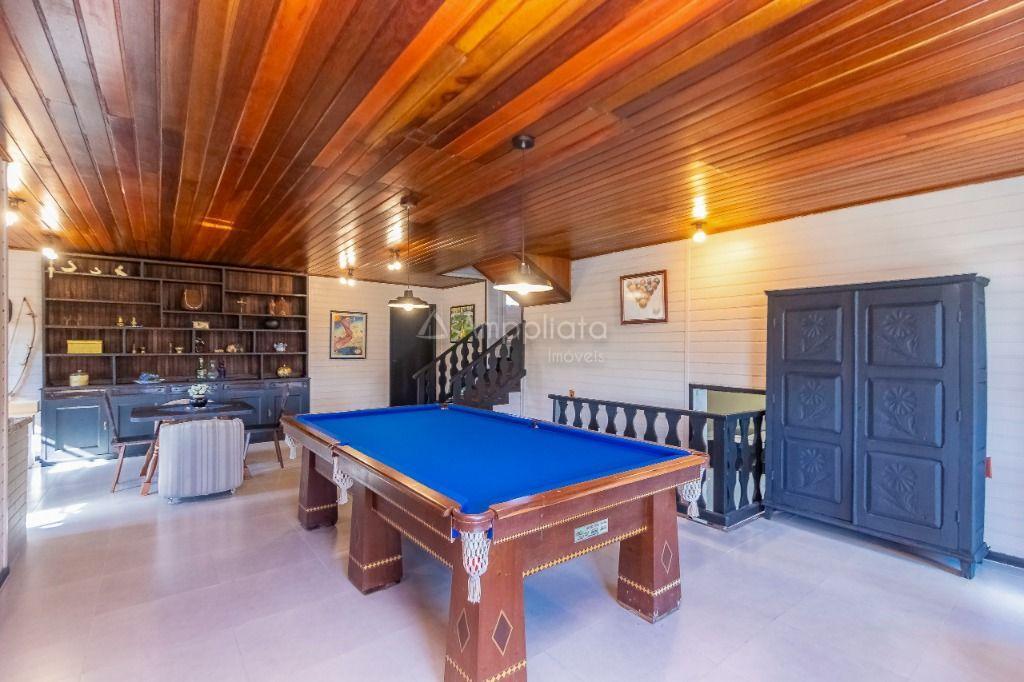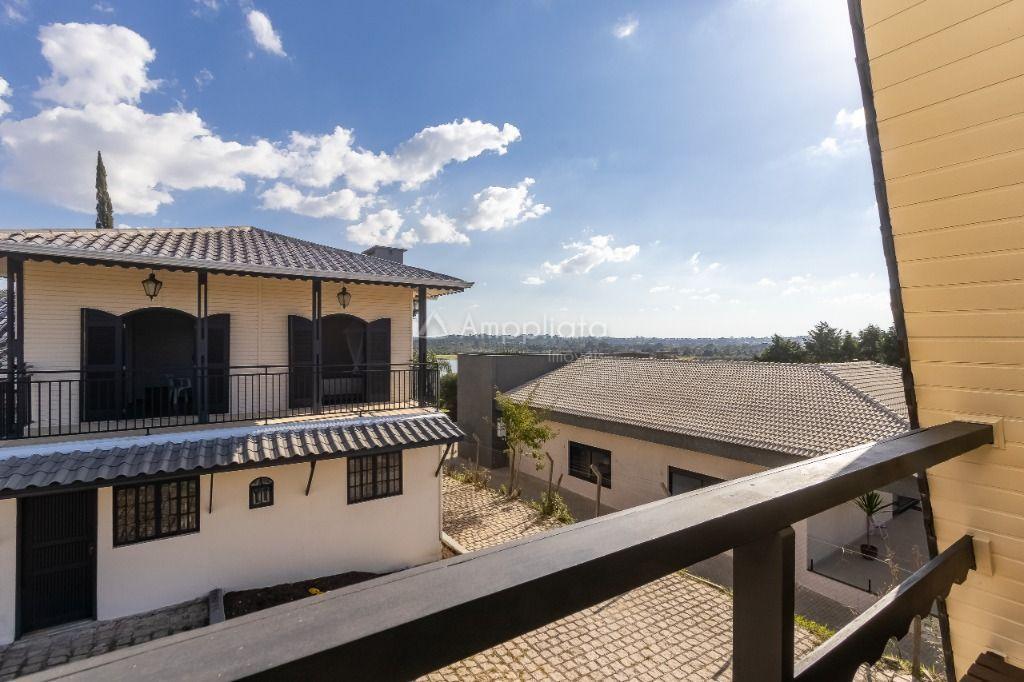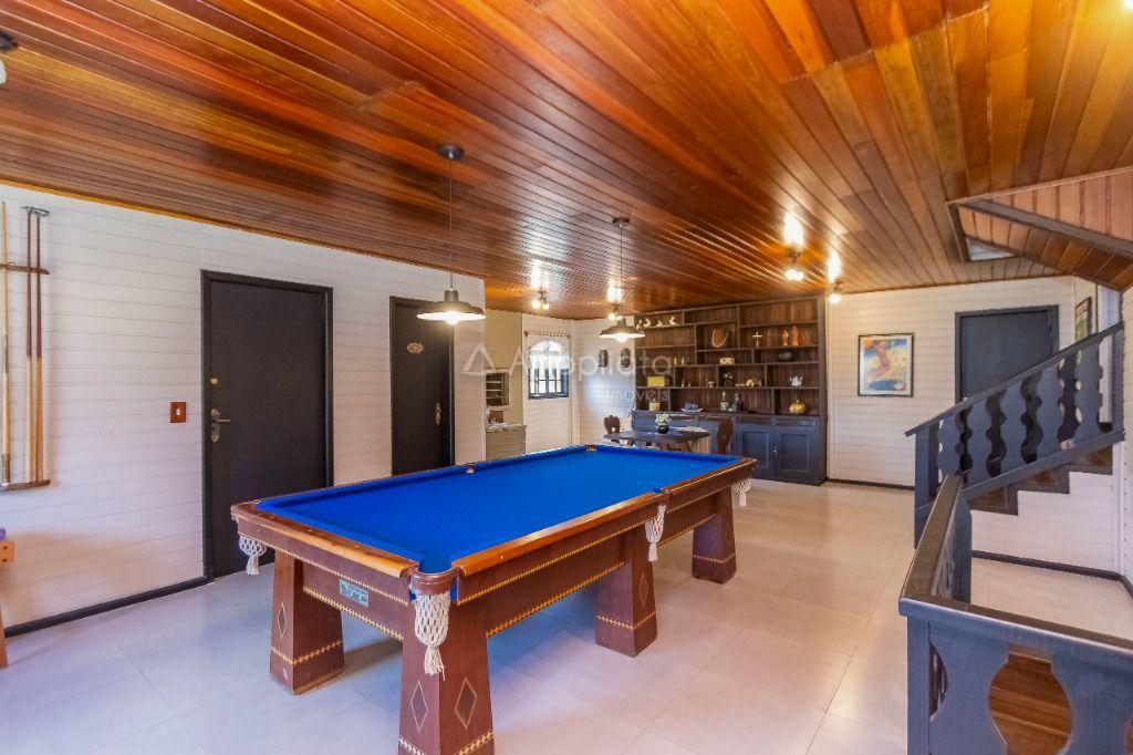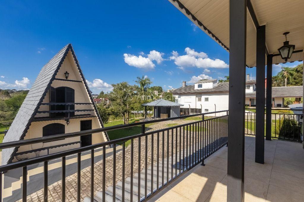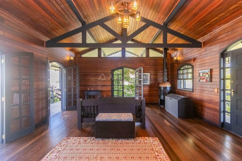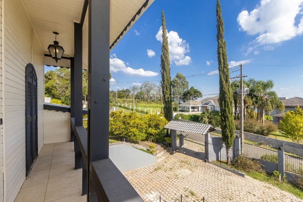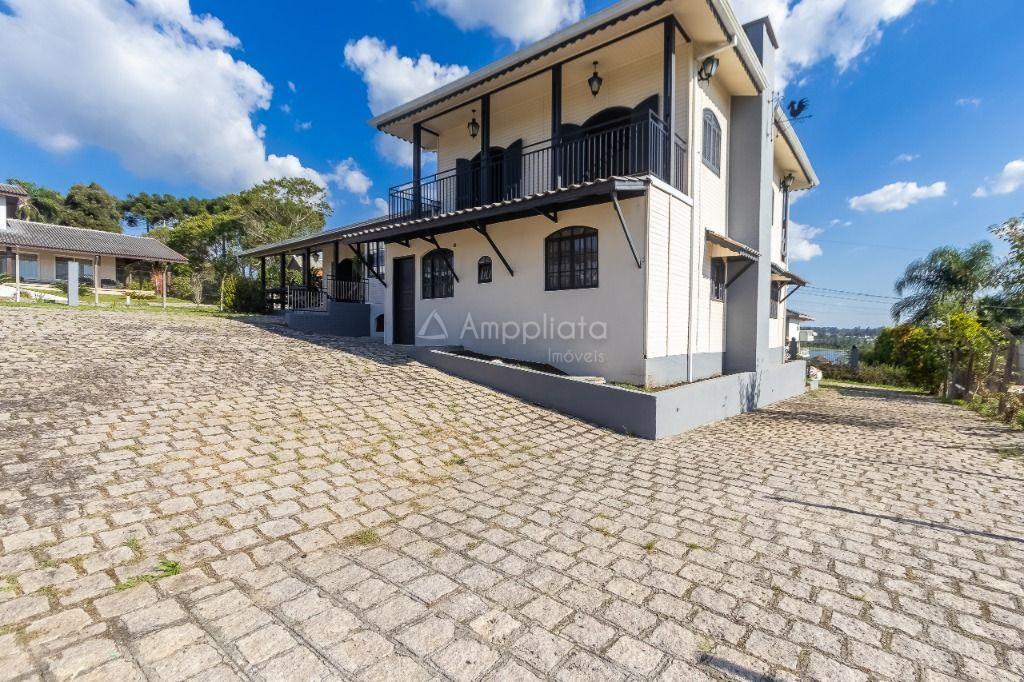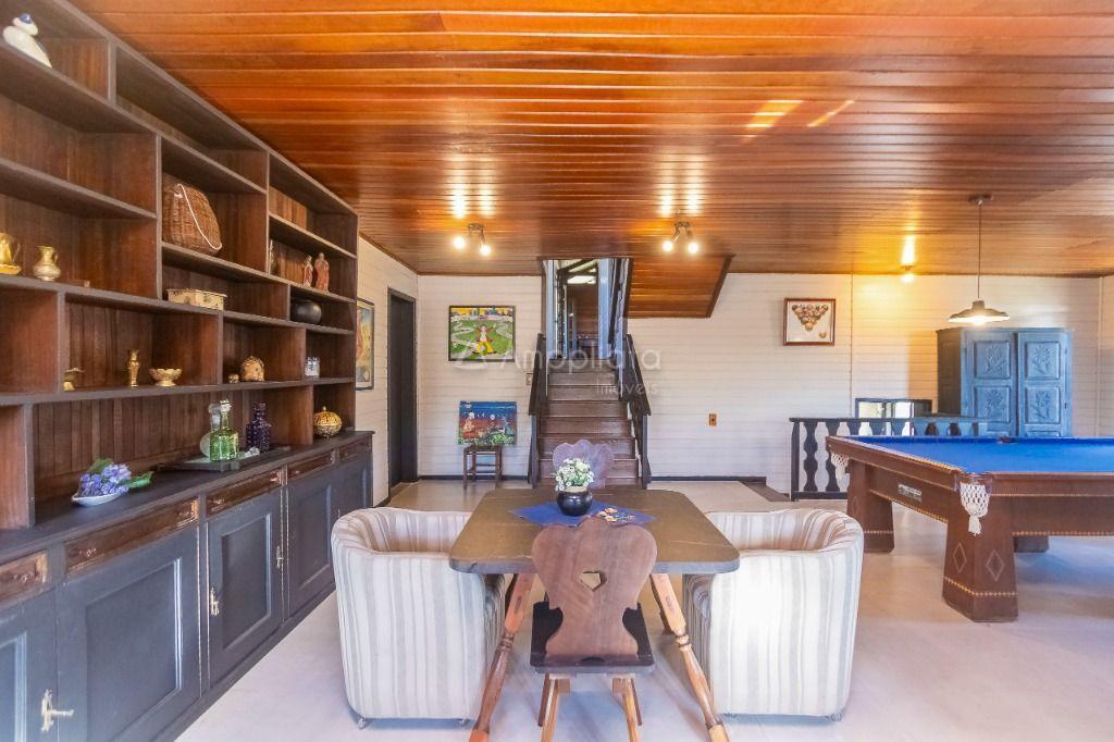 Casa principal: 4 quartos (2 suítes), sala com lareira, salão de festas/jogos, cozinha com despensa, varanda panorâmica, garagem p/ 4 carros.