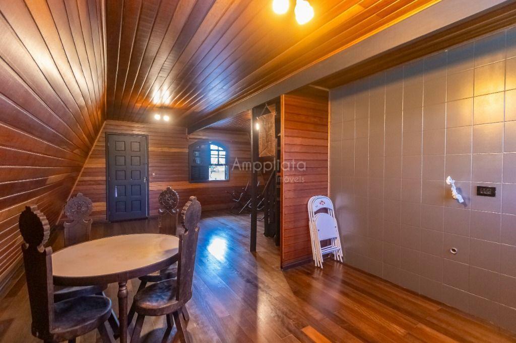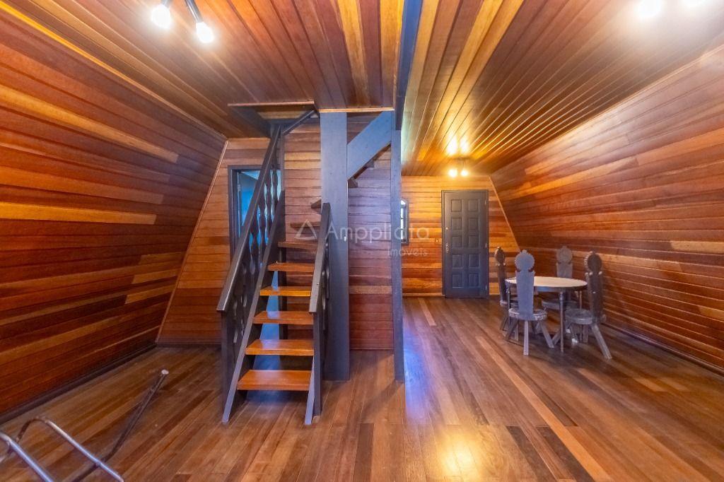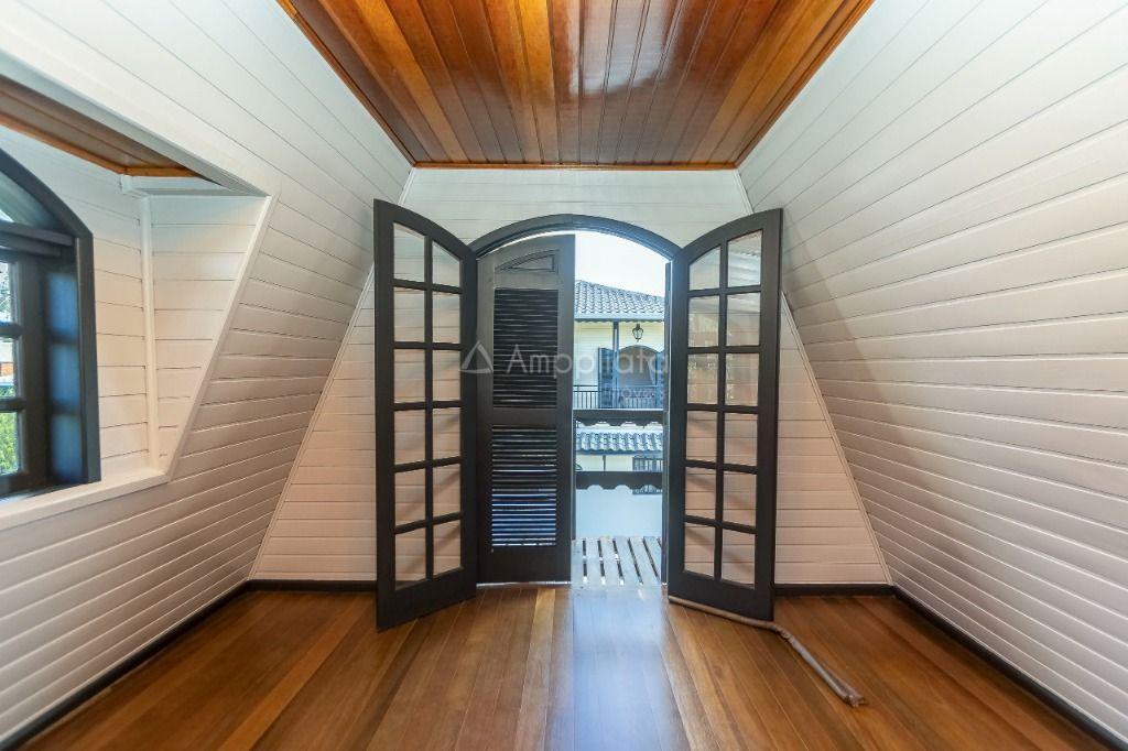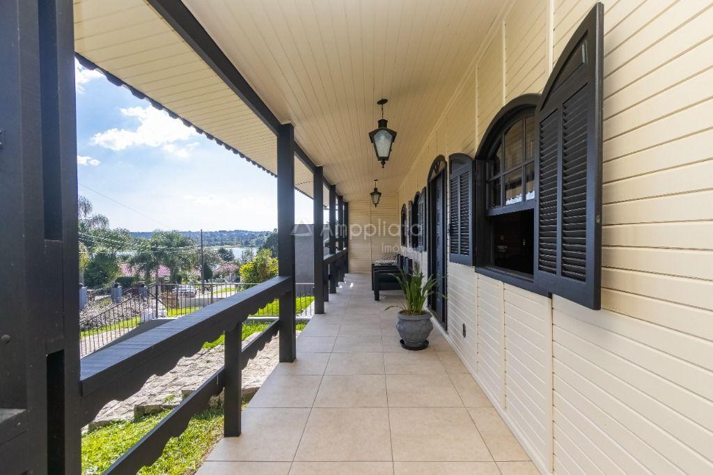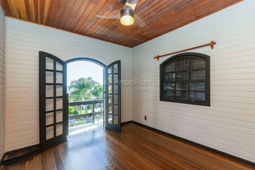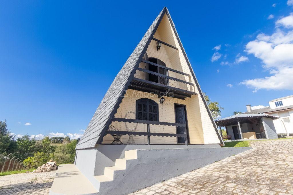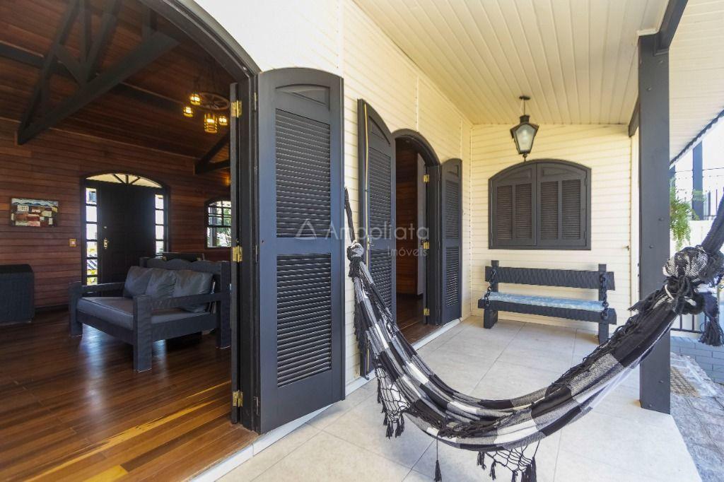 Casa principal: 4 quartos (2 suítes), sala com lareira, salão de festas/jogos, cozinha com despensa, varanda panorâmica, garagem p/ 4 carros.