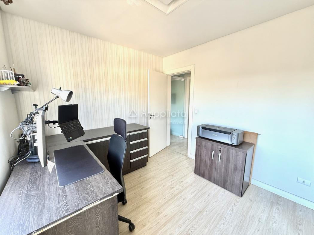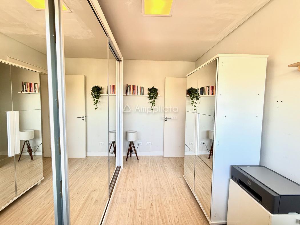 Os três dormitórios, sendo uma suíte, mantêm equilíbrio entre privacidade e convivência. O piso laminado amplia conforto térmico.