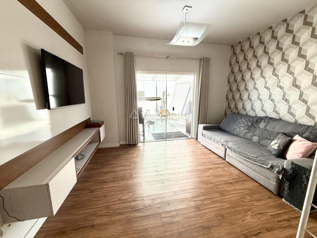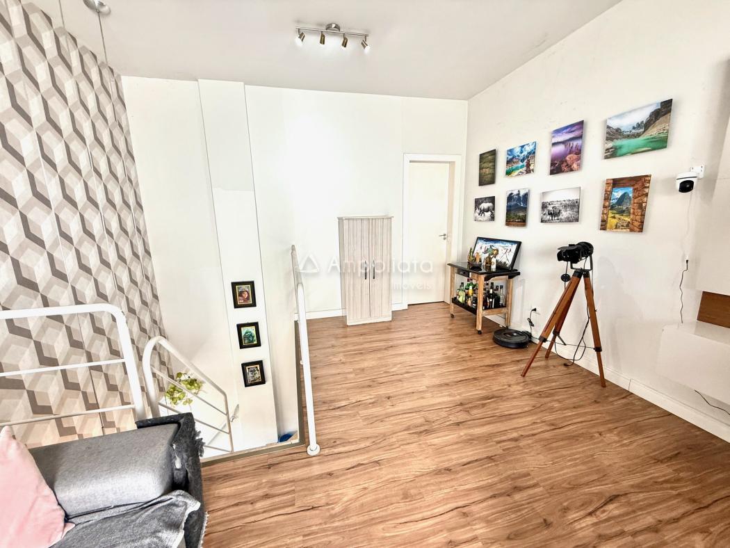 No segundo pavimento, o imóvel revela seu diferencial. O ambiente superior se adapta à rotina: sala íntima reservada, escritório silencioso ou espaço de convivência. O lavabo amplia a autonomia do andar.