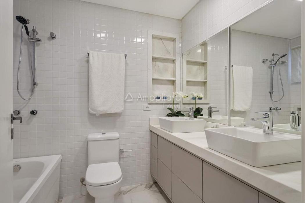 Banheiro da suíte com duas cubas e banheira