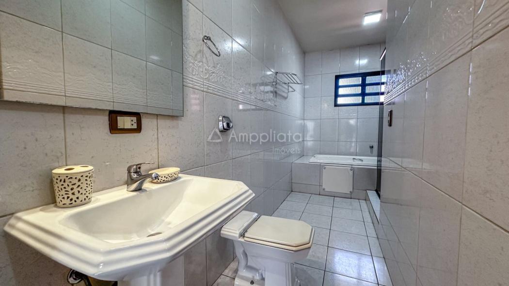 - banheiro social com armários, box vidro temperado e espelhos;