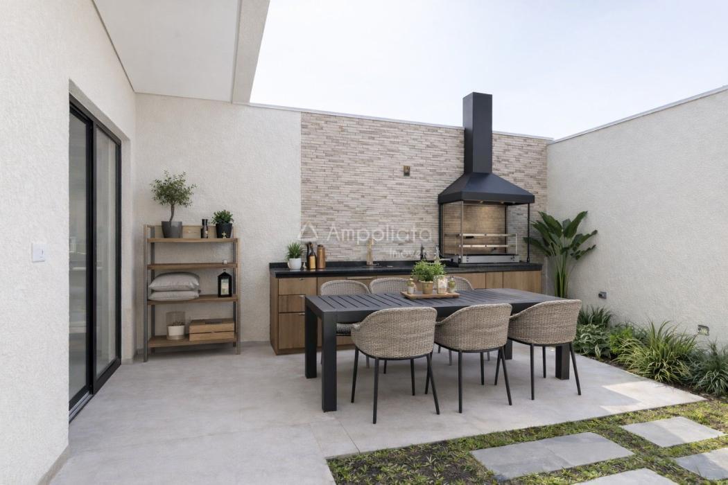No andar inferior, você encontrará um conceito aberto que integra perfeitamente a sala de estar, jantar e cozinha, criando um espaço acolhedor e convidativo para reunir amigos e familiares. Além disso, desfrute da infraestrutura para um espaço gourmet externo, perfeito para churrascos e eventos ao ar livre.